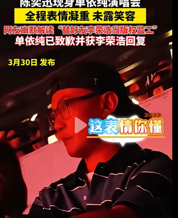 网友纷纷嘲谑,IM体育陈奕迅这是受李荣浩所托,来现场当“版权督工”,那凝重的色彩,仿佛是在期间辅导,不要再唱好友的作品。致使有网友玩笑,他的色彩贬责全程在线,主打一个“看管好友版权”。