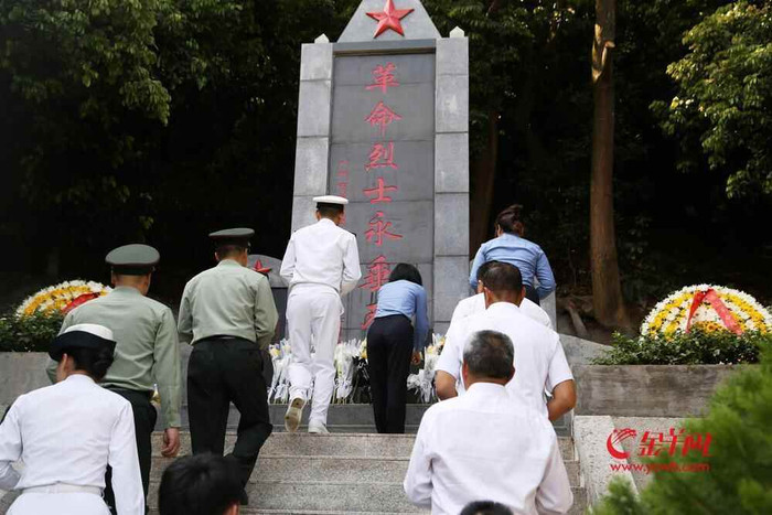 油麻山矜重静谧,松柏含翠。整体东说念主员整王人排队,凝听职业老师,重温先辈荣光,此背面向立异义士挂念碑肃立致哀,轮番向前敬献白菊,以最朴素的口头抒发最深远的追忆念。