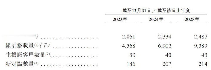 2023年-2025年,斑马智行的主机厂客户数目从2023年的30家增至2025年的43家,年搭载量从约206万台增至2025年的约250万台。