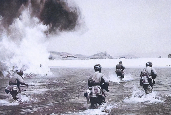 此时的清川江宽300余米,水深1.45米,江边结着厚厚的冰层,江水寒流透骨。四个尖刀连八百多名战士一字排开,在炮火掩护下冲入江中。遽然分,敌军照明弹将江面照得如同白天,炮弹在江水中炸开,击起的水柱高达数丈。