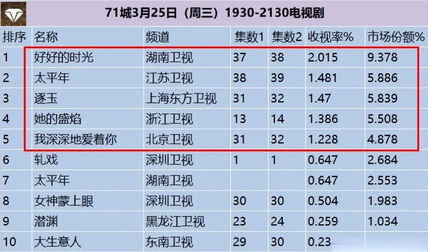电视剧收视率名次榜,你在追哪一部?