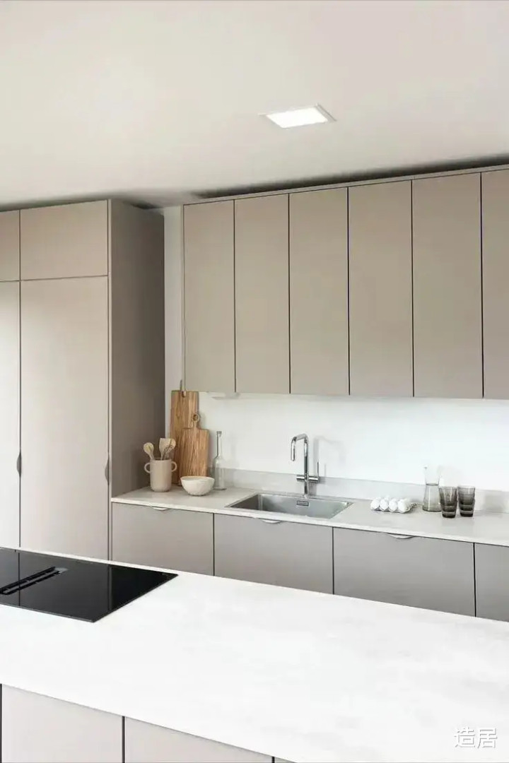 二是吊柜底灯搭配无拉手柜门,用反弹器或凹凸留缝盘算推算,告别凸出拉手,和线型灯搭配举座更简洁,打扫卫生也莫得卫死活角。