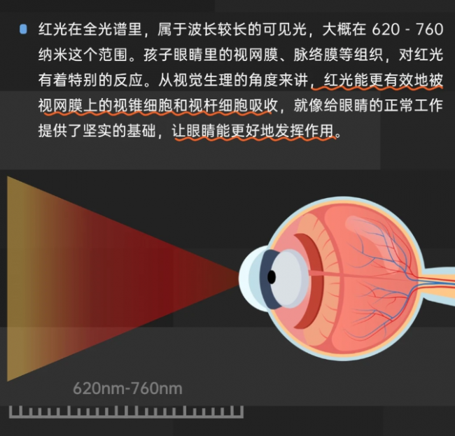 “3型分段”RRT2.0红光养眼:通过补充天然光中对视觉更友好的长波红光,还针对不同庚级段作念了“3型分段红光”缱绻,让不同阶段的用眼需求齐能得到更合适眼睛养护。